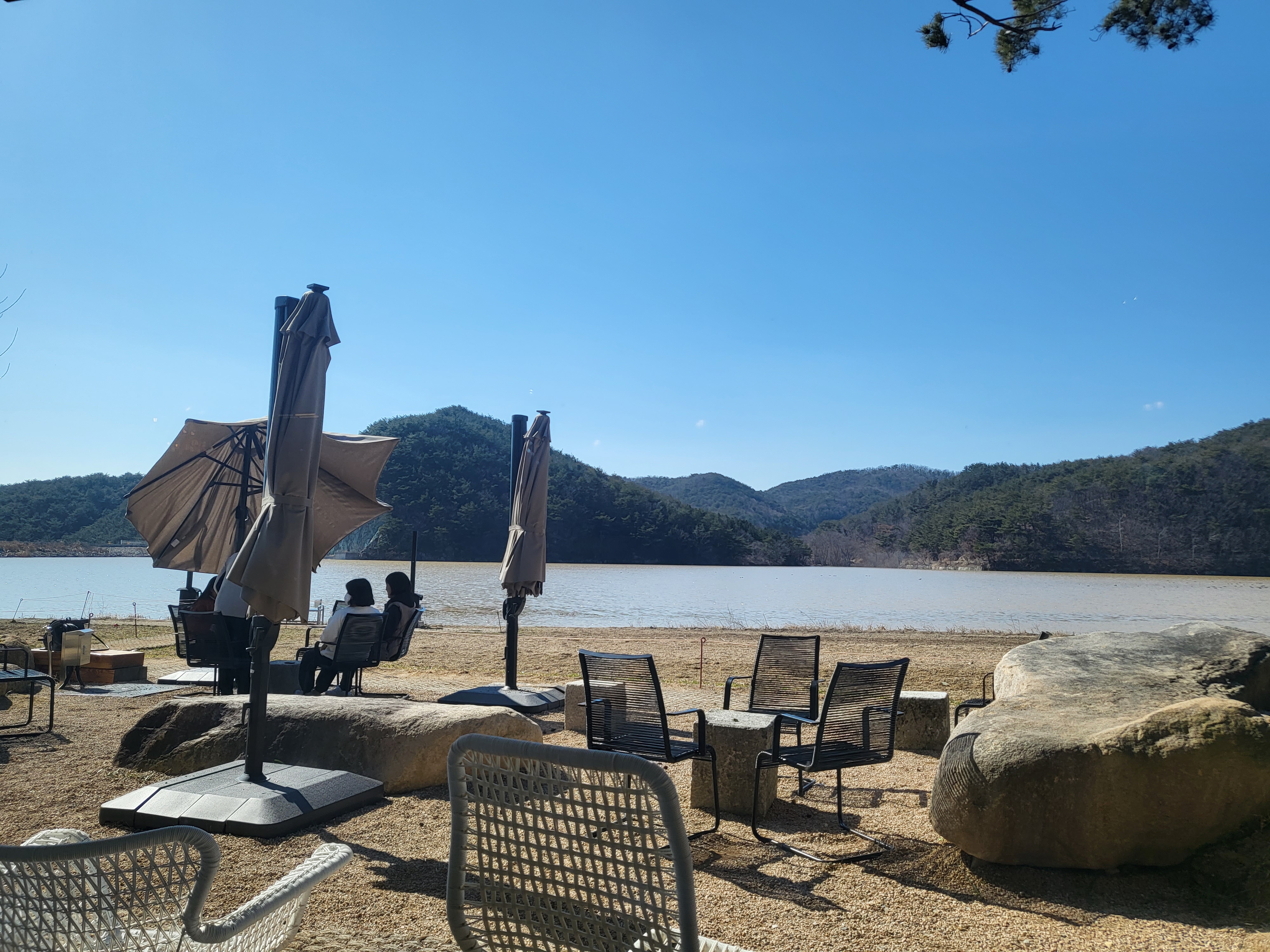 바로 눈앞에 펼쳐지는 경주하동저수지를 바라보며 휴식을 취하고, 매달 바뀌는 유명작가들의 그림을 감상할 수 있는 카페입니다.