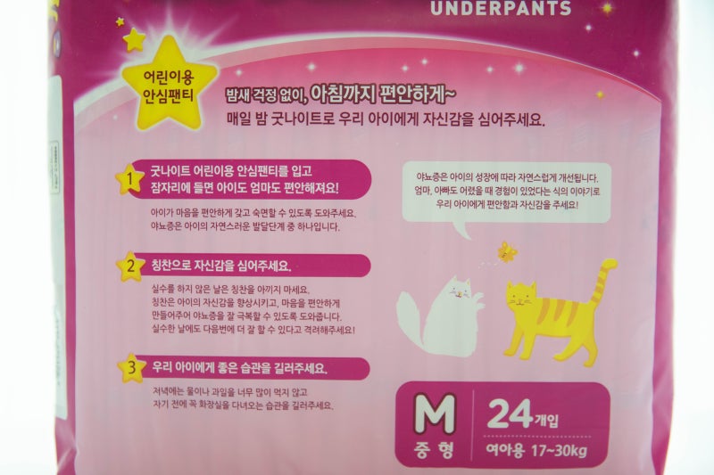 밤기저귀 굿나잇 안전팬티 아이들의 야뇨증 걱정없이 기저귀를 벗고
