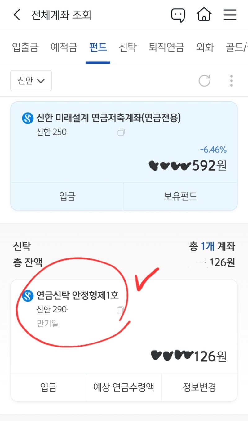 신한연금저축신탁 – 수령조회