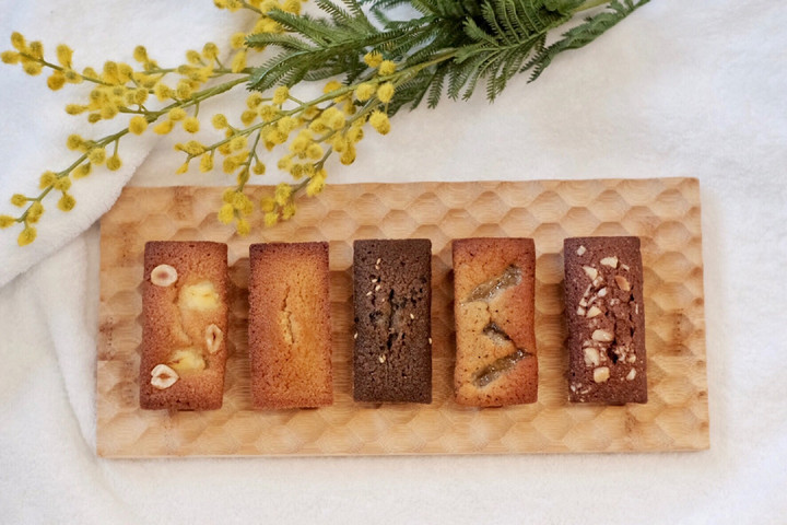 My Lay Oven Financier는 개별적으로 플라스틱과 양피지로 포장되어 선물 상자에 담겨 배송됩니다. 이 버라이어티 세트는 6개로 구성되어 있으며 한 가지 맛으로만 구성할 수 있습니다.